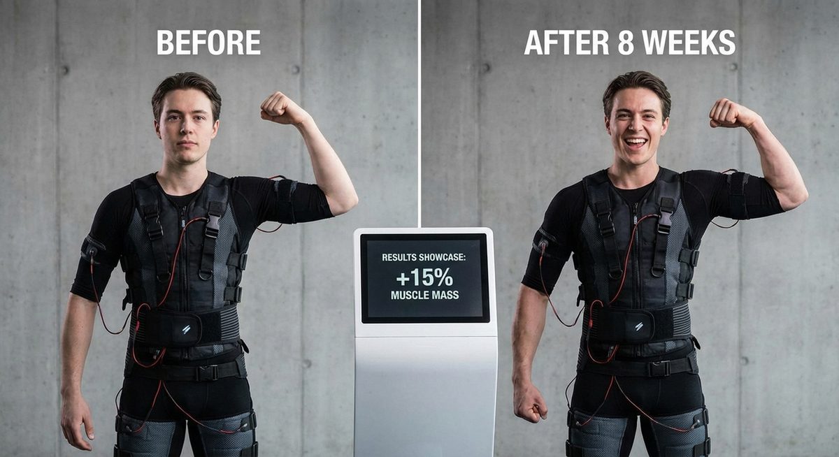 Onderzoek toont aan dat EMS-training effectief is voor het verminderen van vetpercentage en het opbouwen van spiermassa. Een studie gepubliceerd in het Journal of Sports Science & Medicine vond een gemiddelde afname van 1,5% lichaamsvet en een toename van 0,5 kg spiermassa na 10 weken EMS-training.
